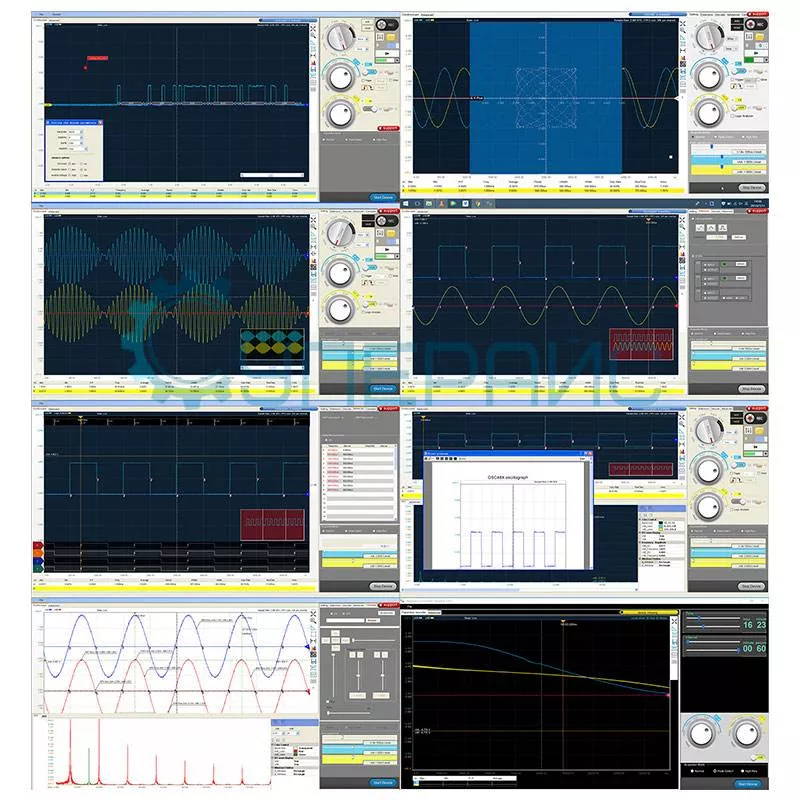 Автоматические измерения | максимум, минимум, среднее, среднеквадратичное значение, частота, период, положительная ширина импульса, отрицательная ширина импульса, коэффициент заполнения, время нарастания, значение от пика к пику | ||