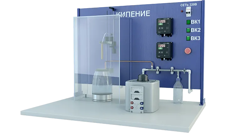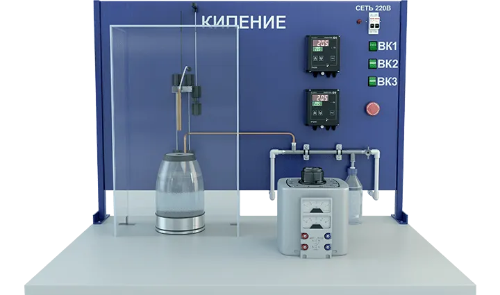 Лабораторная установка для исследования процессов теплообмена при различных режимах кипения жидкости в большом объеме. Изучайте основы теплофизики с точными настройками и контролем параметров.