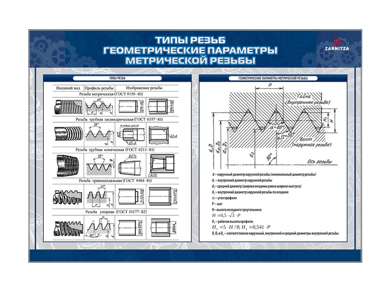 - Типы резьб. Геометрические параметры метрической резьбы.