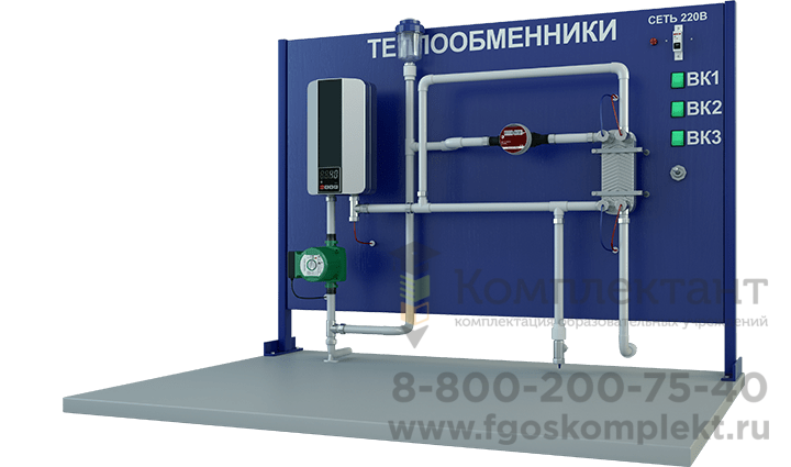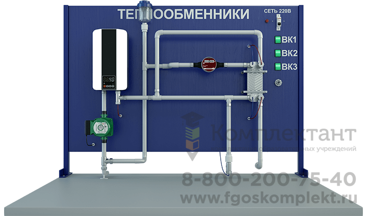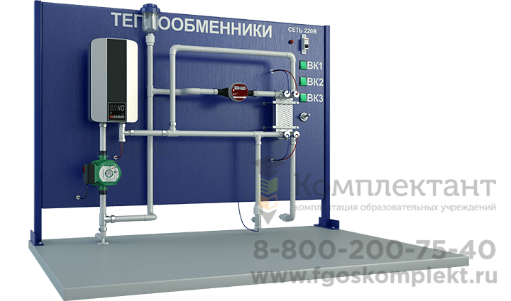 Лабораторная установка для испытания различных конструкций теплообменных аппаратов: «труба в трубе» и пластинчатый. Изучайте основы теплопередачи и анализируйте работу разных типов теплообменников в образовательных целях.