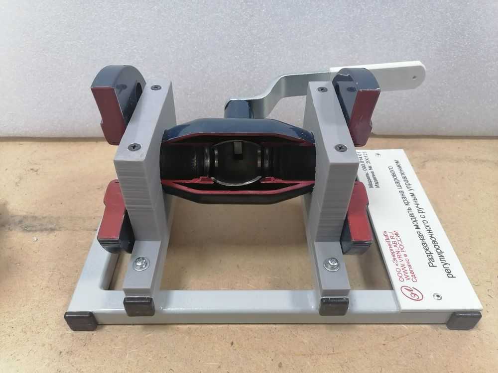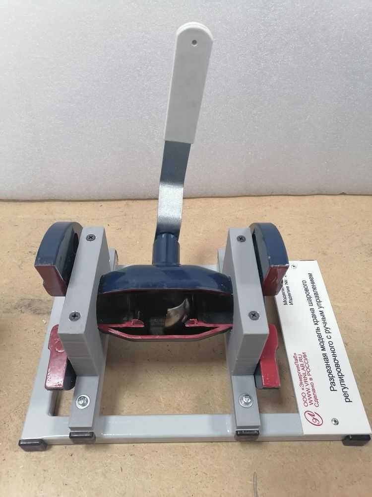 Разрезная модель крана шарового регулировочного с ручным управлением предназначена для изучения конструкции шаровых кранов типа DN40PN40 фланцевого типа, условий и области их применения для студентов высших и средних технических учреждений.