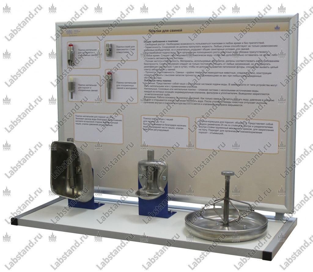 Описание: Стенд-планшет представляет основные виды поилок для свиней, закрепленные на жестком основании с цветографическим изображением.