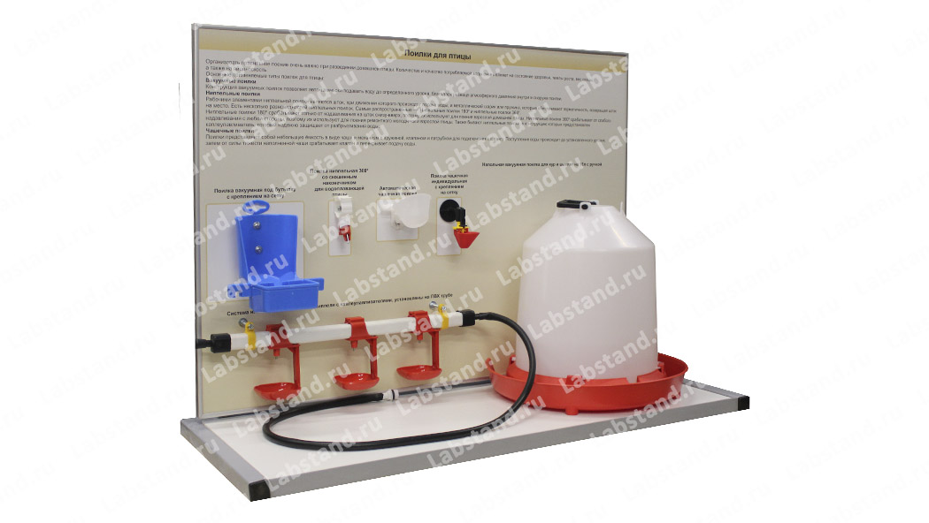 Назначение: Стенд-планшет предназначен для изучения конструкции поилок для птицы.