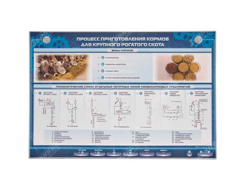 Электрифицированный светодинамический стенд "Процесс приготовления кормов для крупного рогатого скота" предназначен для проведения групповых практических занятий и самостоятельной работы учащихся.