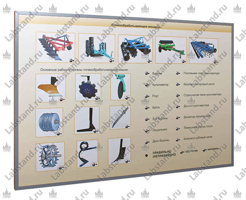Назначение: Стенд-планшет предназначен для изучения принципа действия и назначения почвообрабатывающих машин в учебном курсе «Почвообрабатывающие машины».