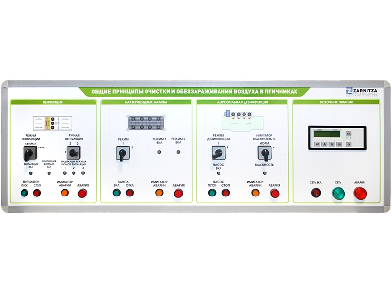 Лабораторный стенд "Изучение системы очистки и обеззараживания воздуха в птичниках" предназначен для проведения лабораторно-практических занятий по направлению "Сельское хозяйство" в части изучения систем очистки и обеззараживания воздуха на птицефабриках, поддержания оптимальных значений показателей микроклимата.