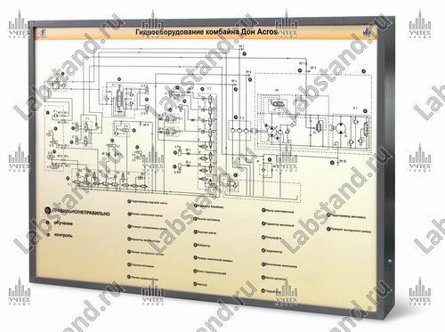 Назначение: Стенд-планшет предназначен для изучения принципа действия приборов и составных элементов гидрооборудования комбайна Дон Acros в учебном курсе «Уборочные машины».