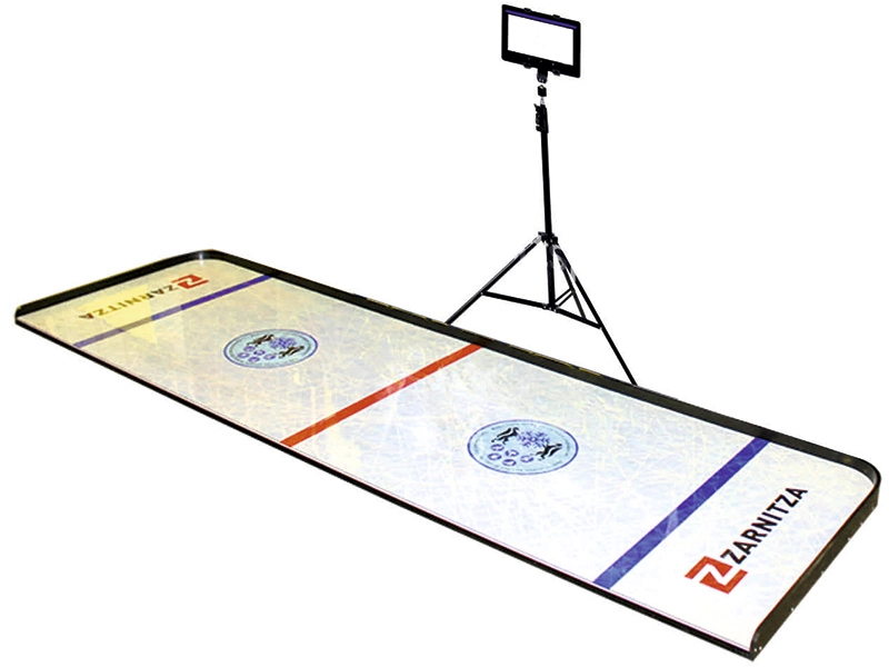 Этот тренажер объединяет интерактивное поле с аппаратно-программным комплексом, обеспечивая отработку скорости реакции, не позволяя опускать голову вниз. Это ключевой навык при игре в хоккей.
