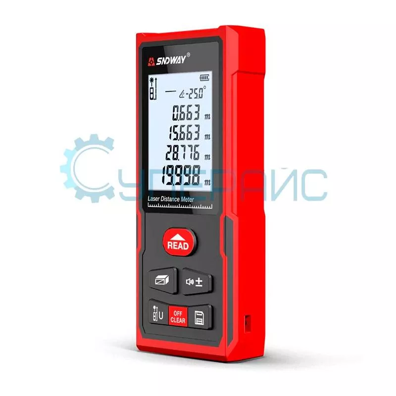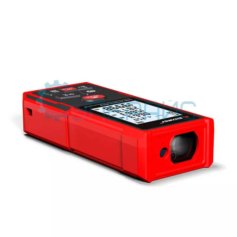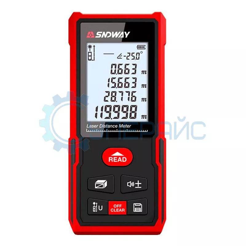 - краткое нажатие отчищает экран от предыдущих замеров, скидывает выбранные функции; при долгом нажатии выключает дальномер