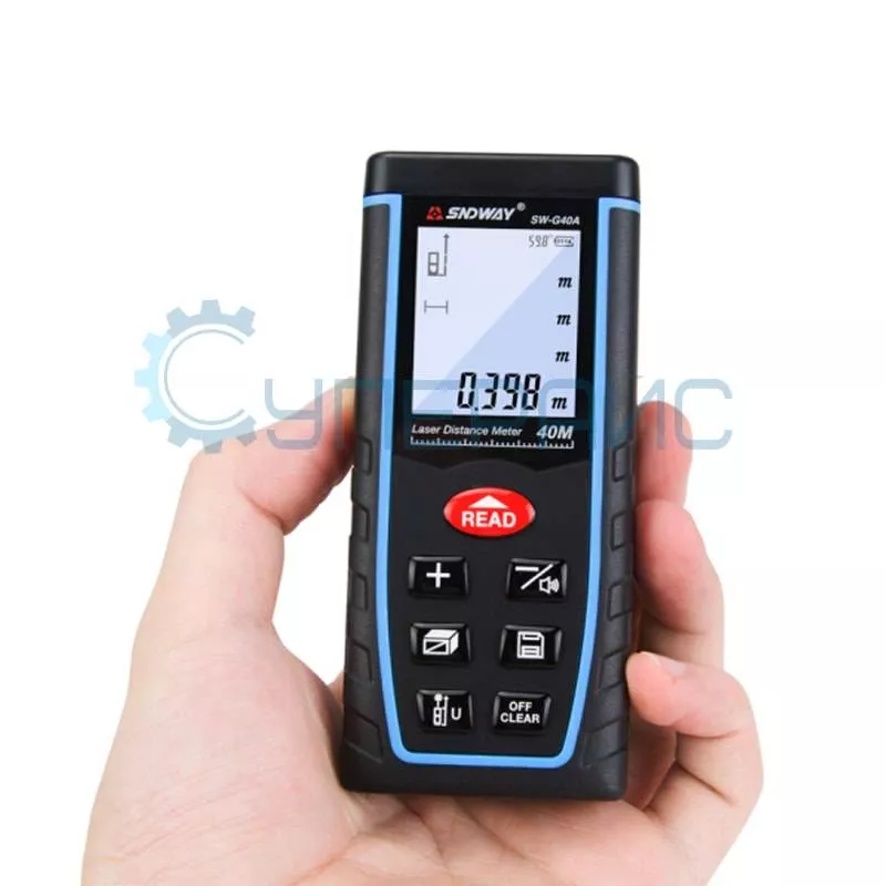 Лазерный дальномер SNDWAY SW-G40A – это доступный измеритель расстояния для строителей, архитекторов, инженеров, дизайнеров и других специалистов, работающих с точными планами помещений и зданий. Прибор обладает отличными эргономическими и массогабаритными характеристиками, имеет широкую функциональность и способен измерять расстояния до 40 метров с погрешностью всего 1,5 мм. Допускается измерение не только в метрах, но и в дюймах или футах.