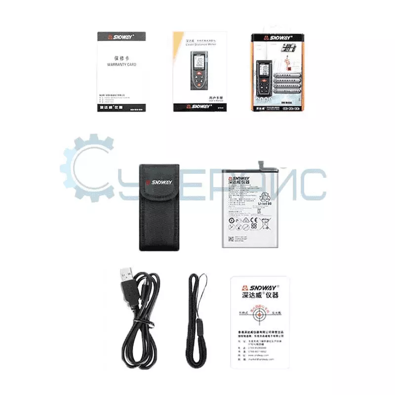 Комплектация | лазерный дальномер SNDWAY SW-TA50 – 1 шт USB-кабель – 1 шт наручный ремень – 1 шт отражательная пластина – 1 шт поясной чехол – 1 шт инструкция по эксплуатации – 1 шт |