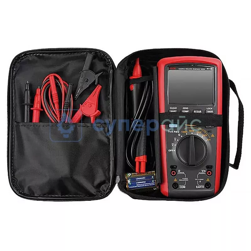 комплект измерительных проводов - 1 шт; чехол - 1 шт; зажимы типа "крокодил" - 2 шт; измерительный наконечник - 2 шт; батарейки типа "АА" - 6 шт; руководство пользователя - 1 шт |