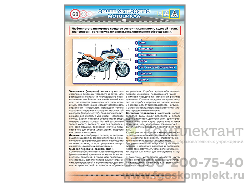 Стенд представляет собой информационную панель, на которой размещены сведения об общем устройстве мотоцикла.