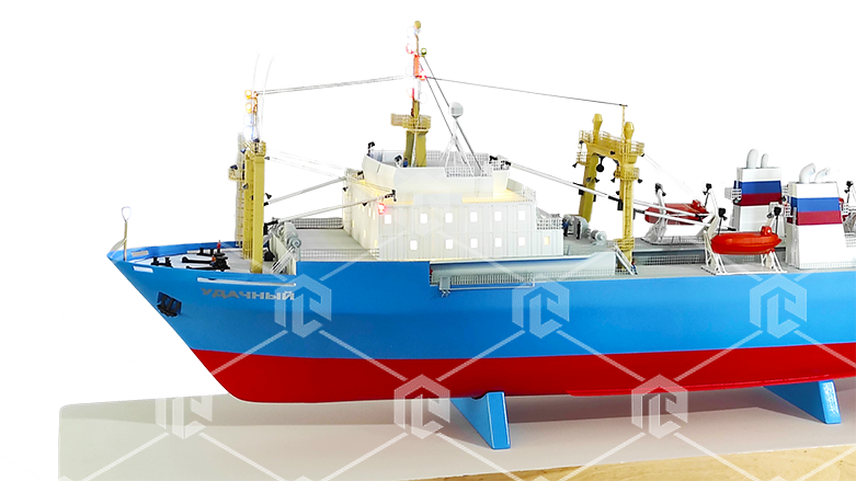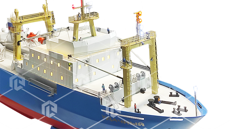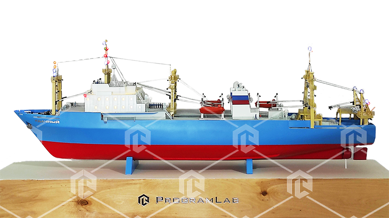 Макет имеет высокую детализацию всех конструктивных элементов судна, позволяет отображать работу сигнальных систем судна, управляя с пульта.
