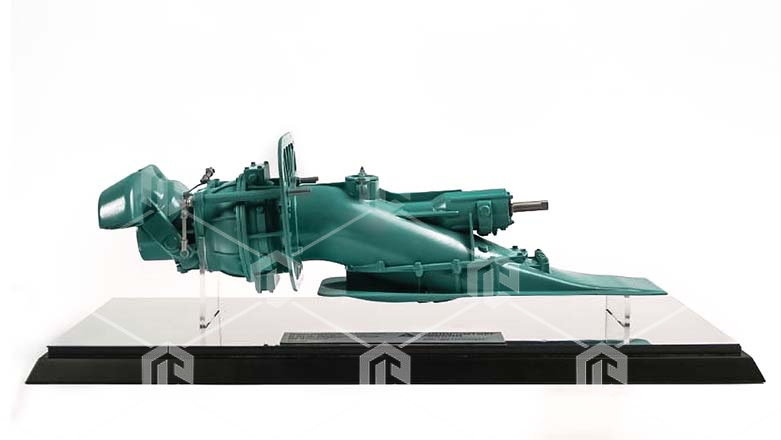 Макет имеет высокую детализацию всех конструктивных элементов, позволяет провизуализировать принцип работы путем приведения в движение электромотором с отдельного пульта управления.
