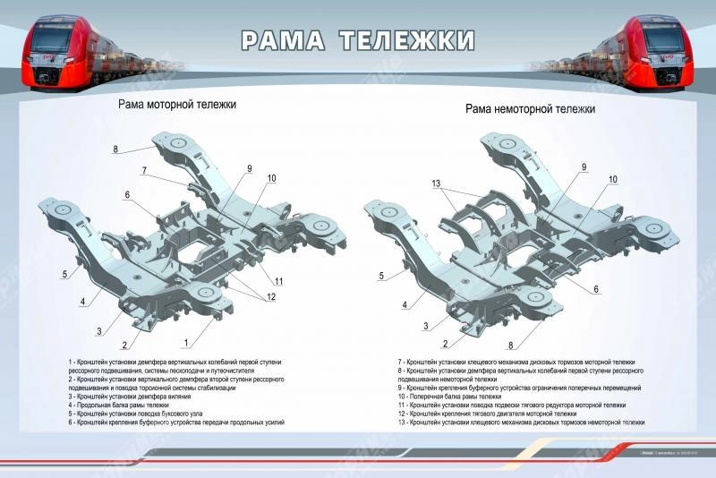 Стенд представляет собой полноцветную панель, на которой расположена информация по конструкции рамы моторной и немоторной тележки.