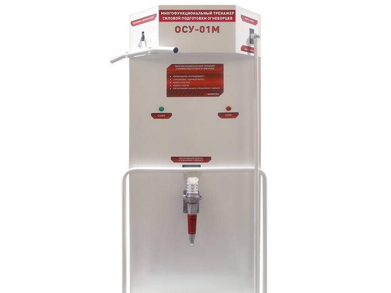 В комплекс входит тренажер, имитирующий протягивание пожарного рукава от насоса. Занятия на тренажере имеют те же самые нагрузки, что и на практических занятиях. Рукав закреплен в корпусе тренировочного комплекса и автоматически втягивается внутрь после завершения эксплуатации.