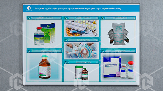 Светодинамический стенд-планшет предназначен для получения знаний о веществах, действующих преимущественно на ЦНС.