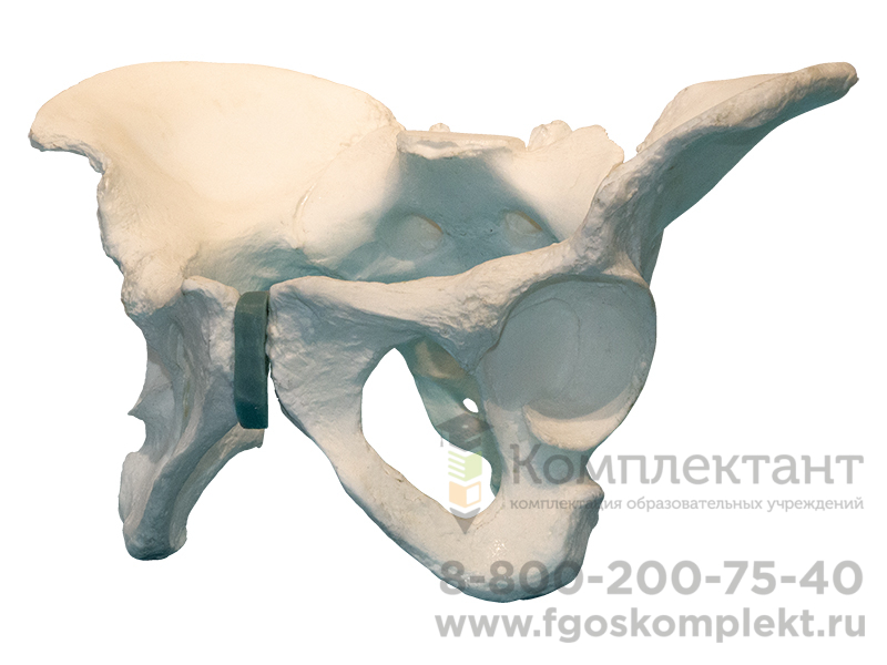 Модель представляет точную анатомическую копию таза человека. Путем подбора полимерных материалов механические свойства изделия (вес, плотность, упругость) максимально приближены к естественным прижизненным значениям.