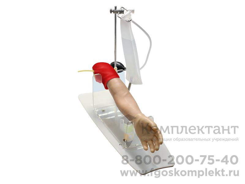 Модель предназначена для отработки навыков введения внутривенно и внутримышечно игл и катетеров, вливания растворов, а также забора крови из вен.