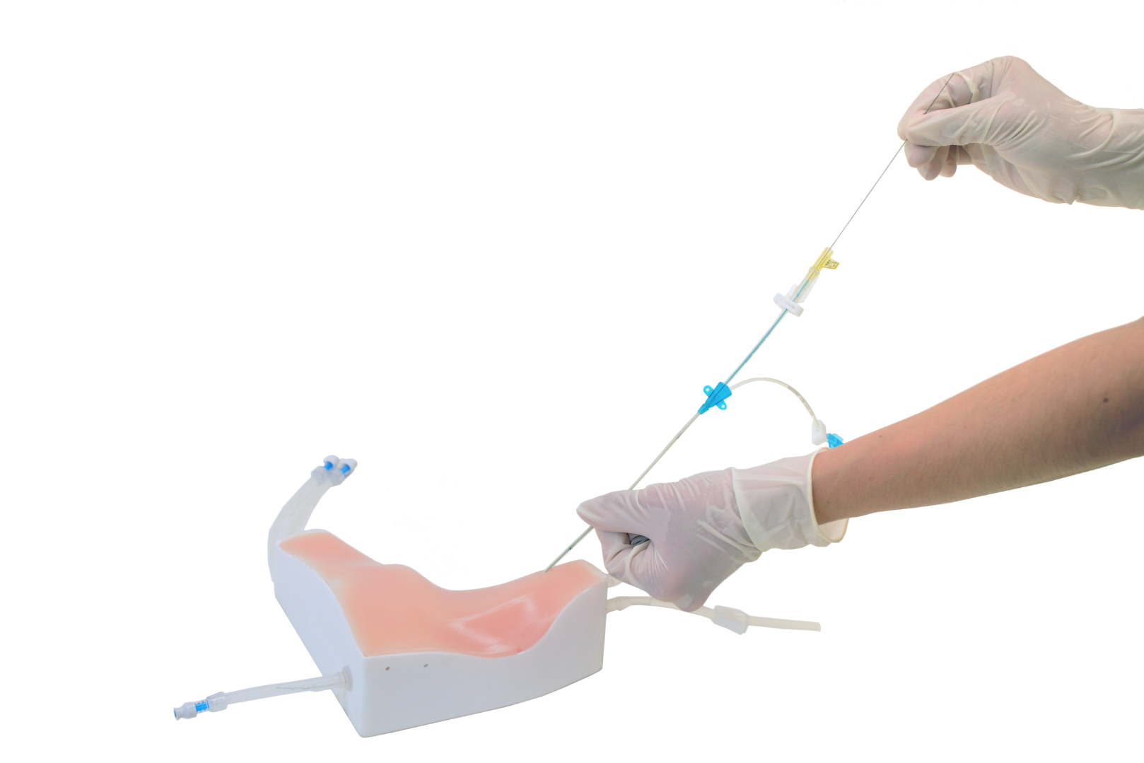 - тренажер позволяет отрабатывать последовательность навыков в проведении манипуляции от первого прокола иглы до установки катетера