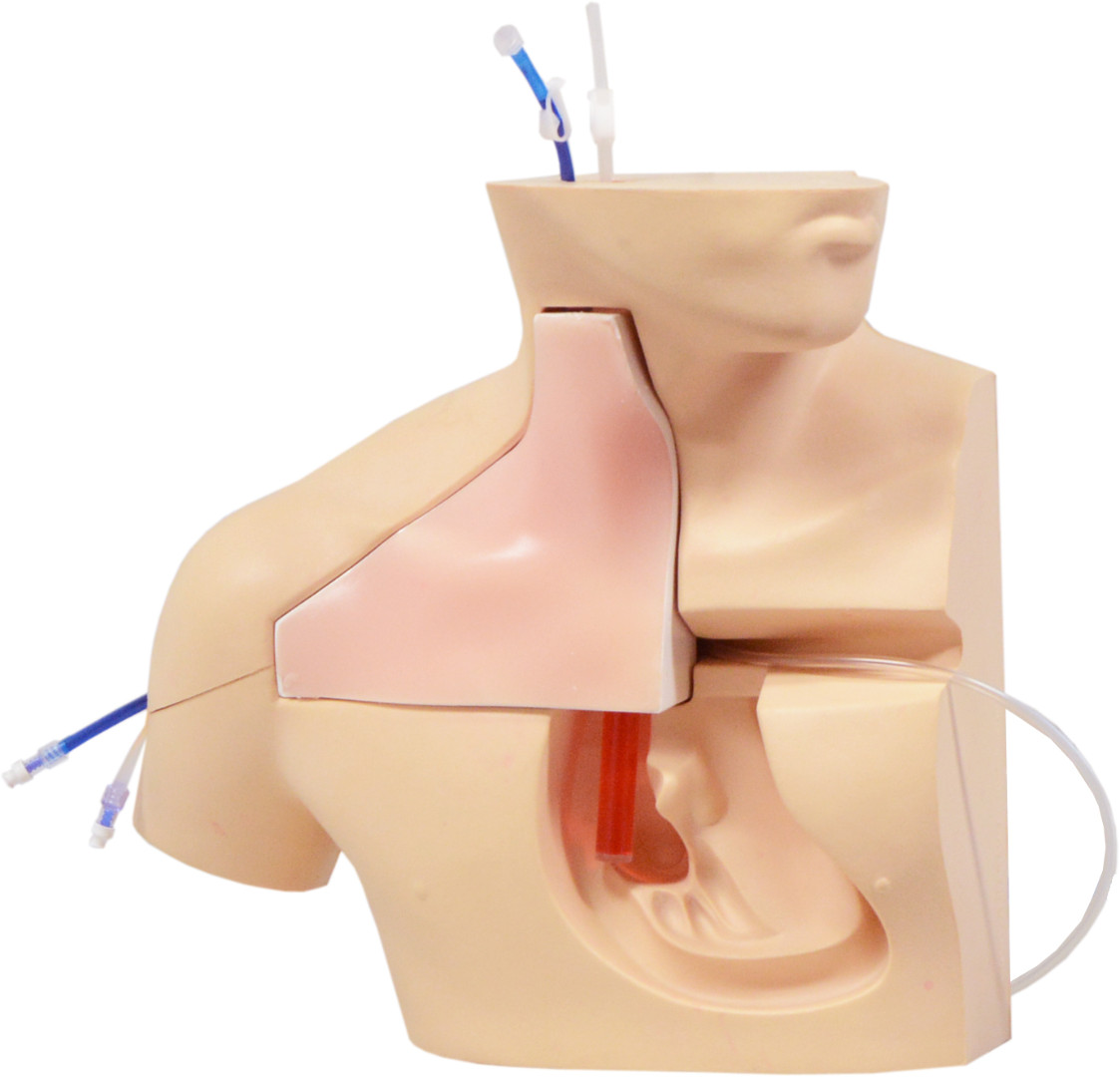 - анатомически правильная конструкция тренажера облегчает обучение установке центрального венозного катетера как по опознавательным точкам, так и под контролем ультразвука