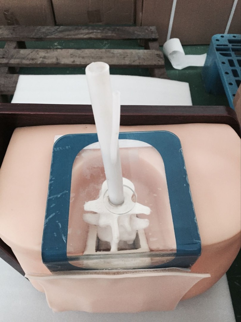 - Тренажер представляет собой модель пояснично-крестцовой области со съемным участком кожи