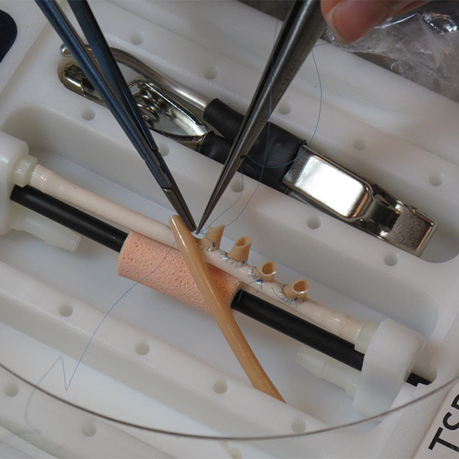 • тренажер укомплектован моделями целевых сосудов (в которые будет производиться вшивание шунтирующего сосуда) двух разных диаметров и моделями сосудов для трансплантации (которые будут вшиваться в целевой сосуд) двух разных диаметров