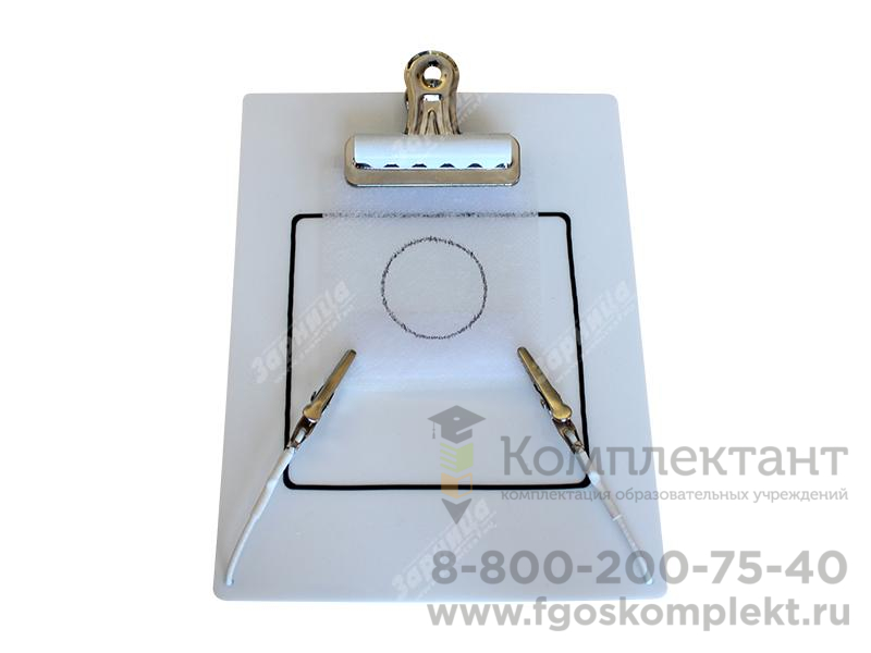 Пособие представляет собой матерчатую салфетку, закрепленную в держателе, с нанесенным на ней кругом в виде черной нити. Тестируемый должен отсекать часть салфетки, расположенную внутри круга, не выходя при этом за его пределы.