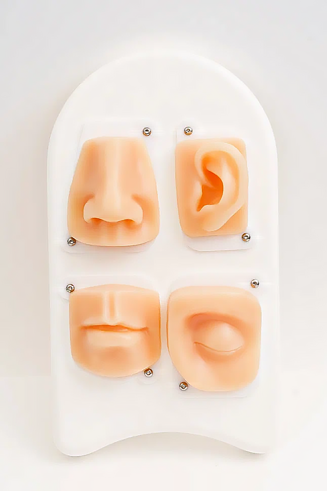 • Модели мягких тканей носа, уха, рта, глаза, выполненных из силикона, для обучения наложению хирургических швов и оказания квалифицированной медицинской помощи при поражениях кожных покровов