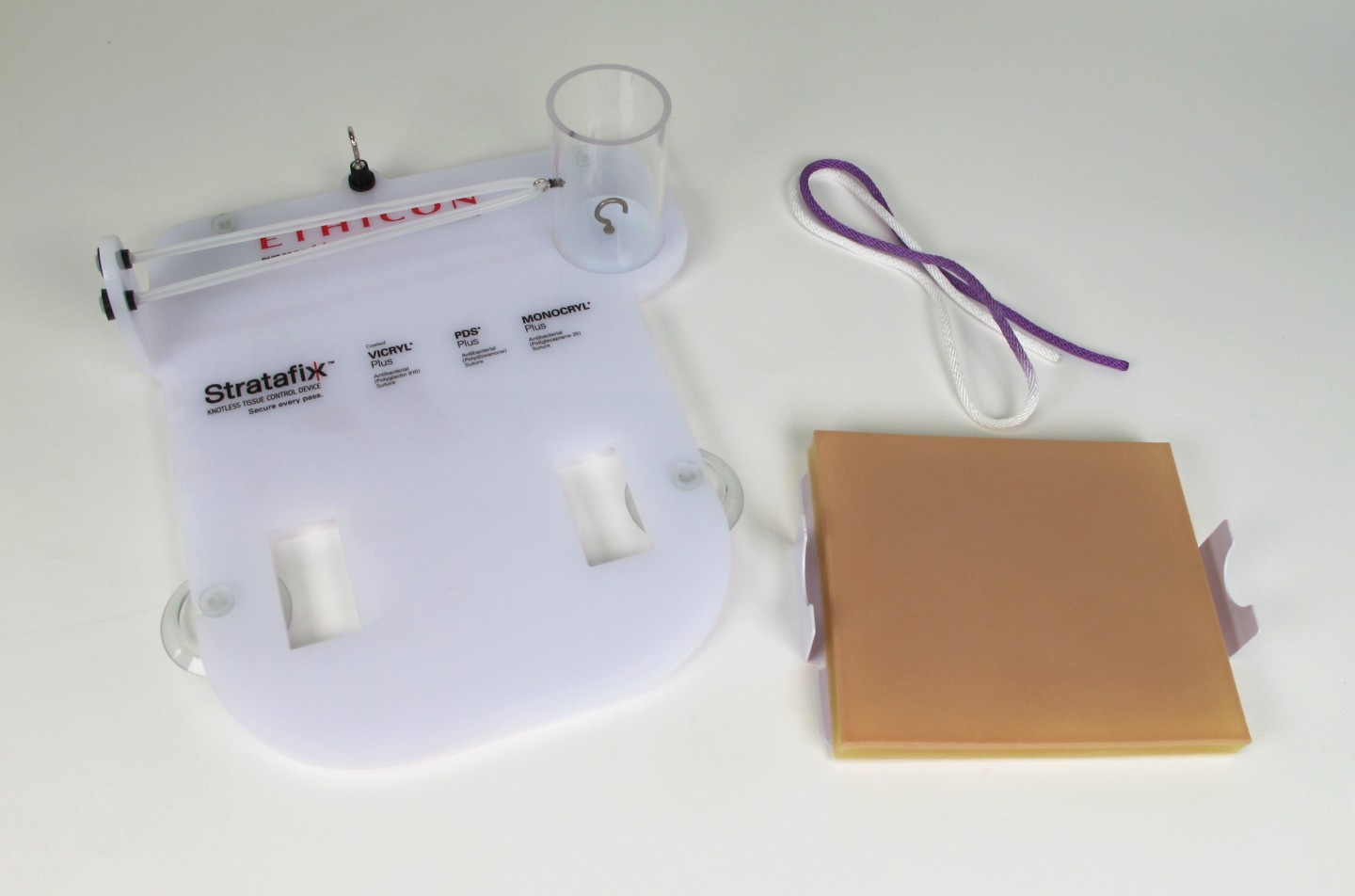• кожная подушечка на съемной подставке позволяет сочетать отработку навыков наложения швов и вязания узлов для сопоставления краев раны