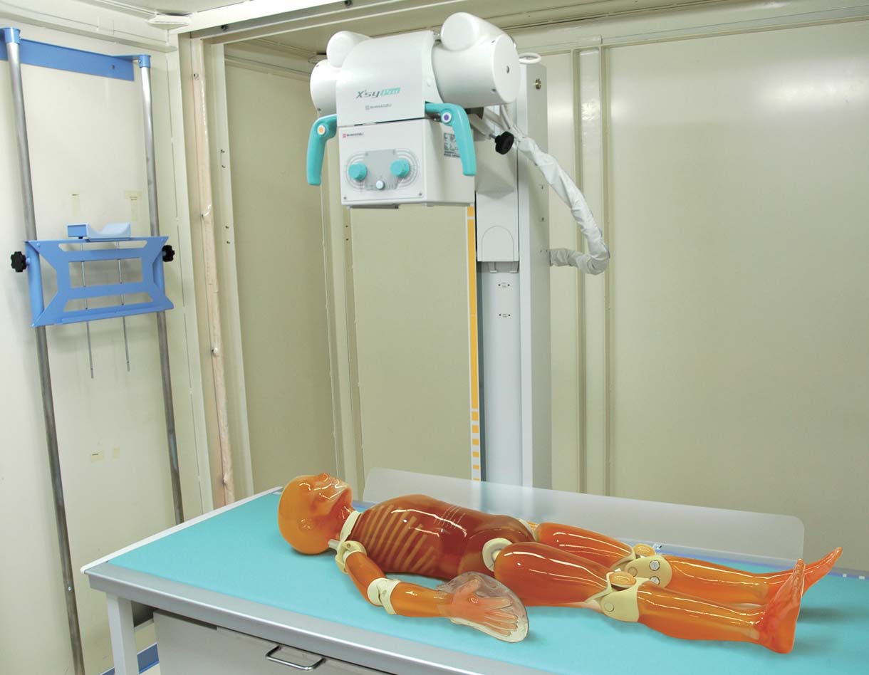 • Полноростовой антропоморфный фантом 5-летнего ребенка в натуральную величину с синтетическим скелетом и внутренними органами