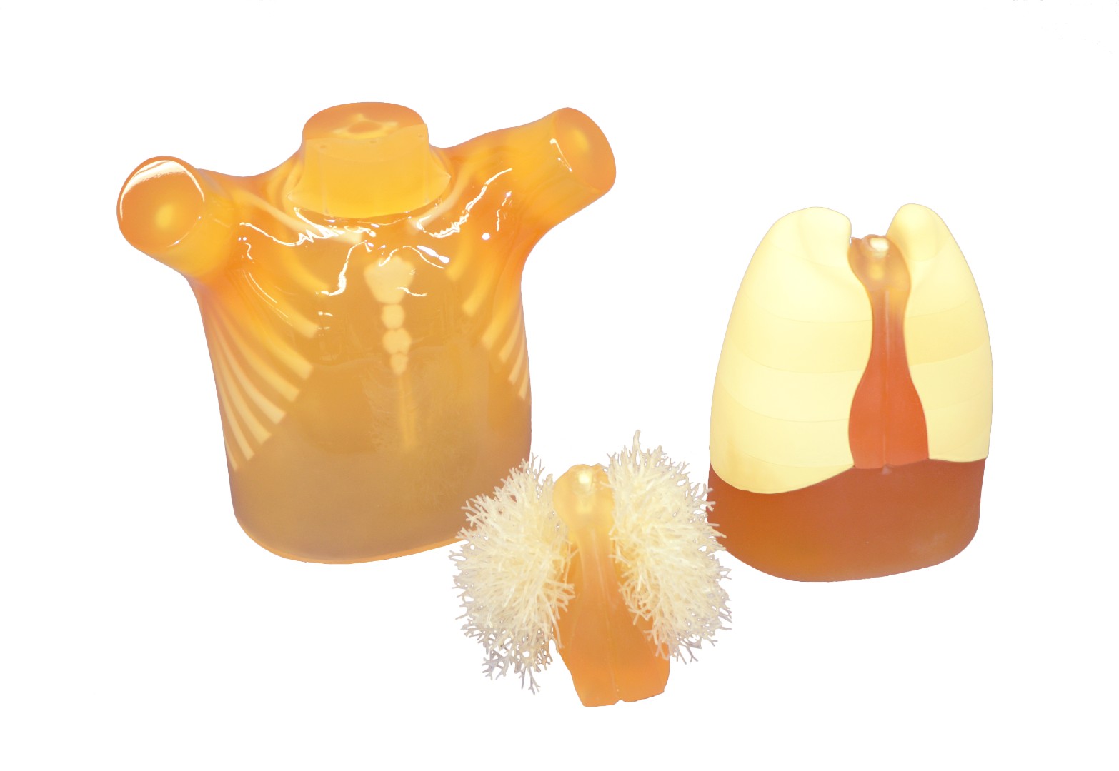 - Модель грудной клетки 5-летнего ребенка с анатомическими ориентирами: ребра, ключицы, позвоночник, средостение, лопатки, грудина, легочные сосуды, сосудистая вставка легкого