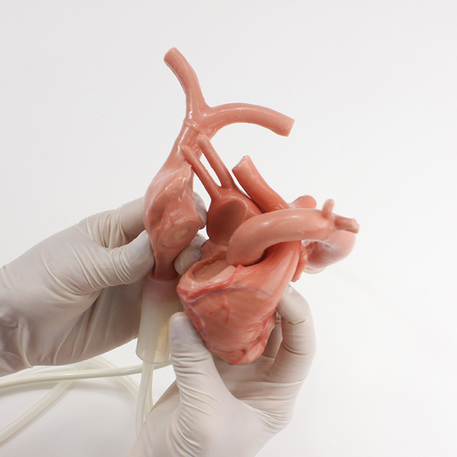 Модуль поддерживает циркуляцию крови в полости грудной клетки. Для симуляции геморрагических осложнений модель правого предсердия содержит кровоточащий участок нижней полой вены с возможностью прошивания.