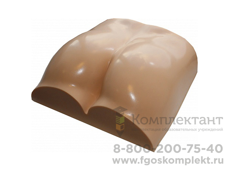 Фантом представляет собой анатомически точную модель ягодичной области таза человека с воссозданным рельефом и костными ориентирами (крестец, большой вертел). Предназначен для отработки навыков определения места и выполнения внутримышечных инъекций.