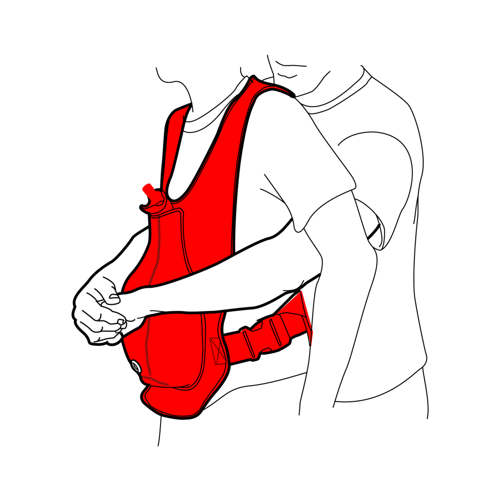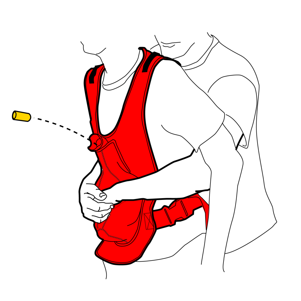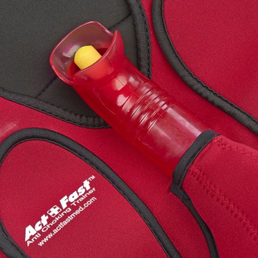 - Тренажер для отработки приема Геймлиха в виде яркого надеваемого жилета предназначен для гибридного тренинга с симулированным пациентом/добровольцем (обучение само- и взаимопомощи)