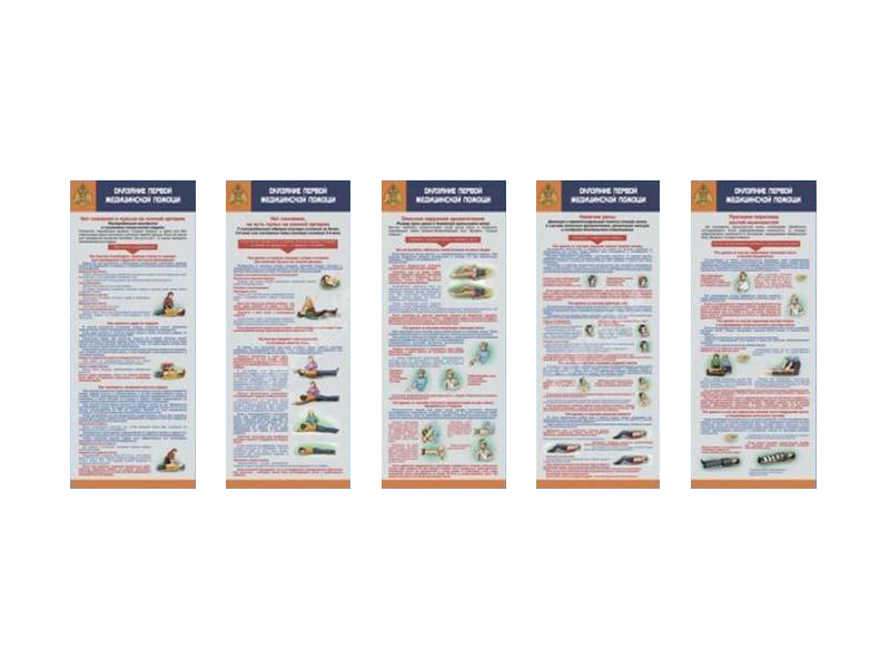 Комплект стендов представляет собой панели, на которых размещена информация об оказании первой медицинской помощи.