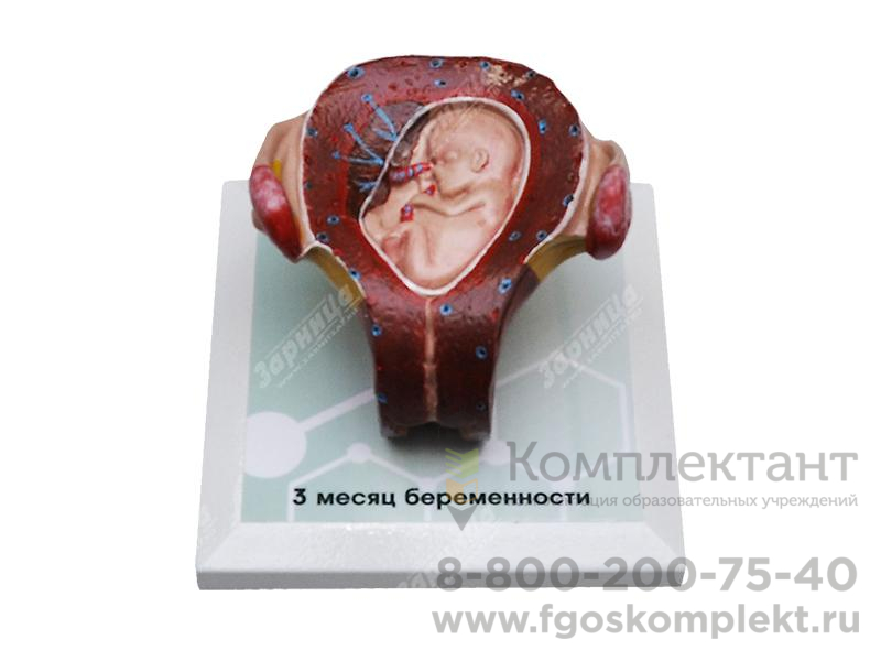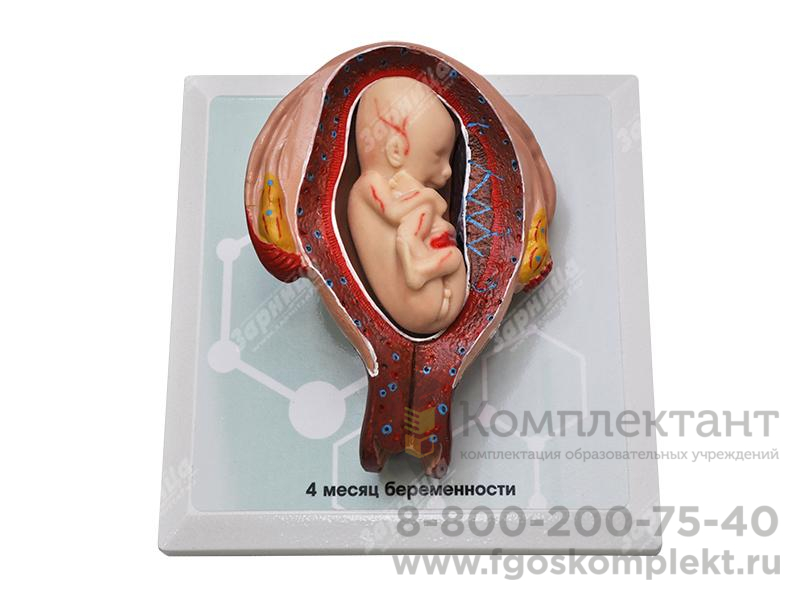 Комплект демонстрационных моделей отражает динамику топографо-анатомических особенностей этапов пренатального развития человека от одного до семи месяцев беременности. Модели выполнены из полимерных материалов, реалистично воспроизводящих свойства тканей матки, зародыша, плода, а также плаценты и пуповины. Передняя стенка матки на препаратах отсутствует, в целях визуализации ее полости и возможности извлечения плода. Отдельная модель воспроизводит вариант развития близнецов. Изделия расположены на удобных подставках, с которых при необходимости легко снимаются.