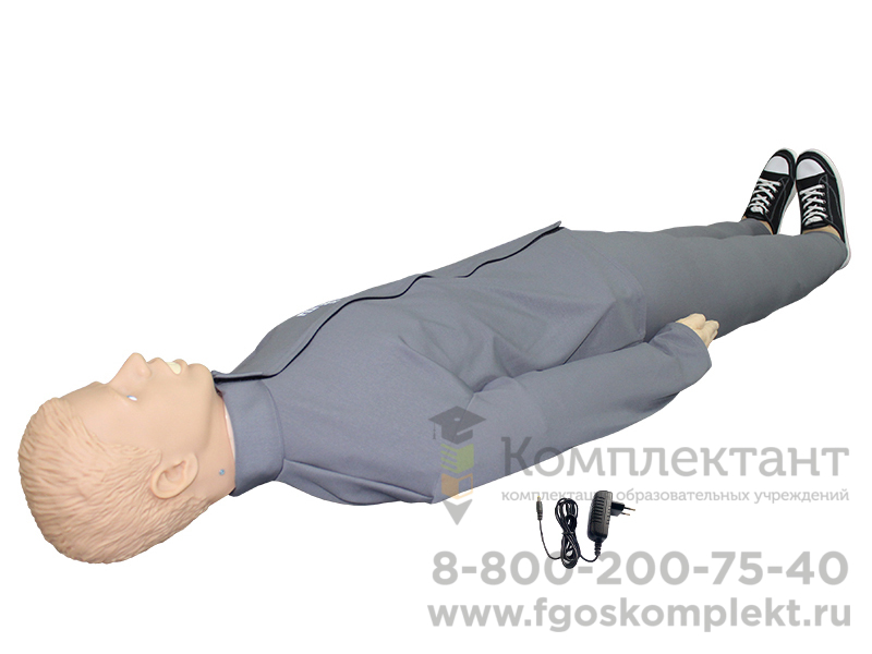 Тренажер-манекен представляет собой имитацию полноростового взрослого пострадавшего и предназначен для отработки приемов сердечно-легочной реанимации с возможностью контроля качества выполнения упражнений.