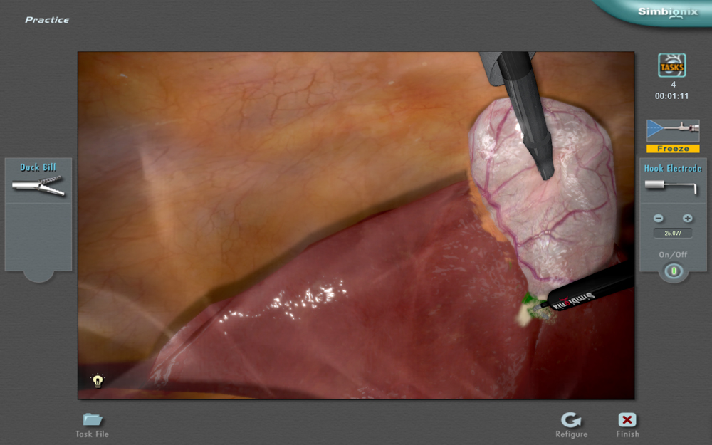 - задания с интерактивным контролем с различными уровнями сложности позволяют осваивать навыки в области лапароскопии от базовых до продвинутых