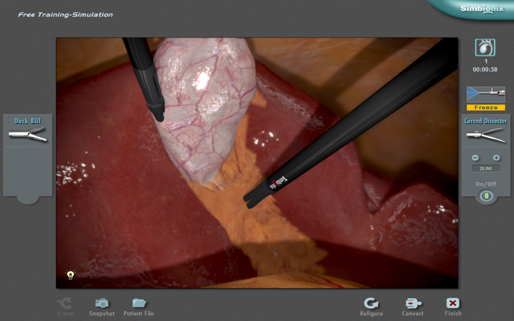 - комбинация подробной анатомии, реалистичной визуализации, широкого диапазона хирургических инструментов и разнообразных конфигураций положения троакаров