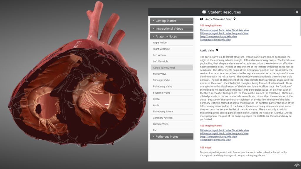 - Встроенный интерактивный учебник с интегрированной высокодетализированной 3D-моделью бьющегося сердца