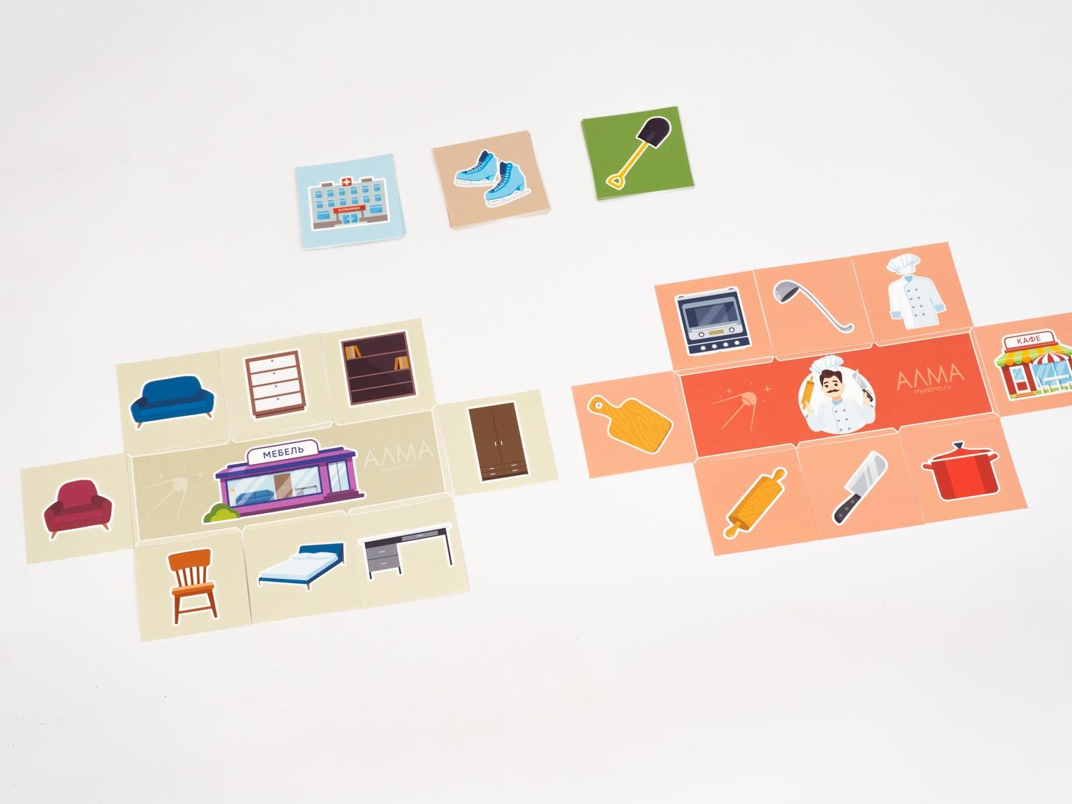 - Тематические карточки для игры «Лото»: магазины и товары, профессии и инструментарий