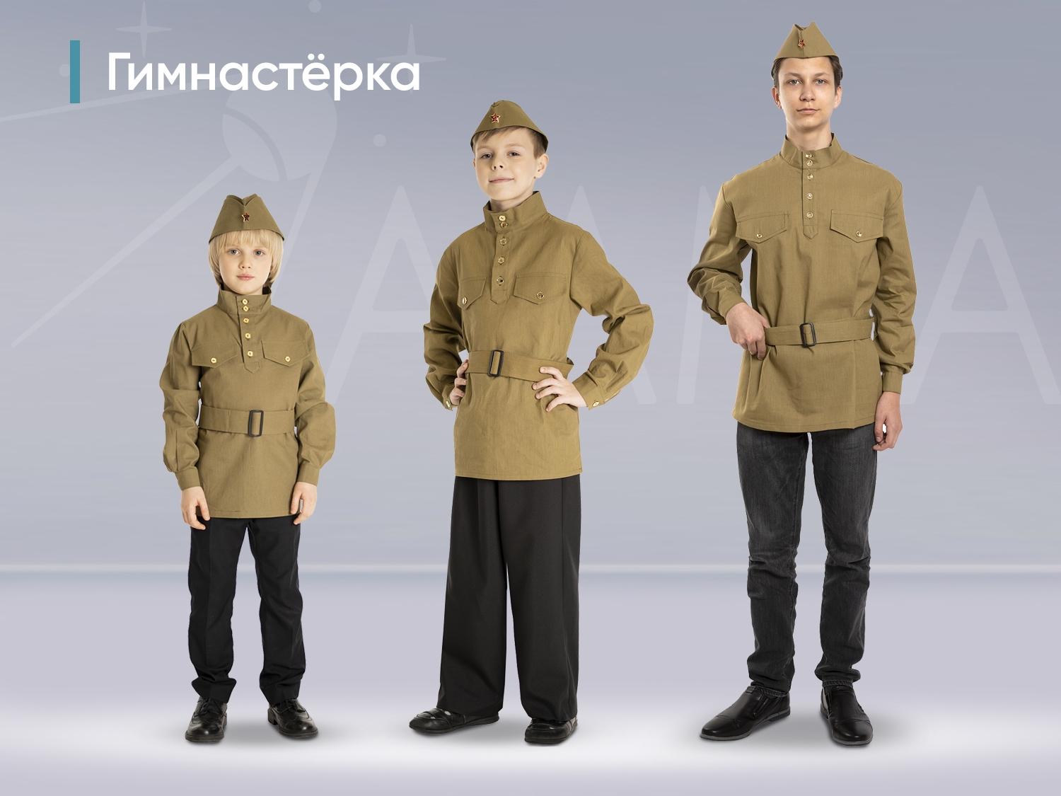 Детская и взрослая военная форма для мальчиков для организации театрализованных военно-патриотических постановок и парадов. Предлагаем полные комплекты военной формы, и по отдельности: гимнастёрки, брюки, пилотки, сапоги, вещмешки, плащи т.д. Все изделия отлично садятся на детские и взрослые фигуры и не сковывают движения. Одежда выполнена по лекалам времен ВОВ.