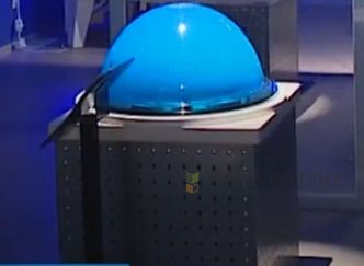Интерактивный экспонат 5 демонстрирует образование и движение турбулентных потоков в атмосферах планет. Посетитель, вращая полусферу, вызывает движения потоков жидкости, которые могут быть ламинарными или турбулентными в зависимости от скорости и равномерности вращения
