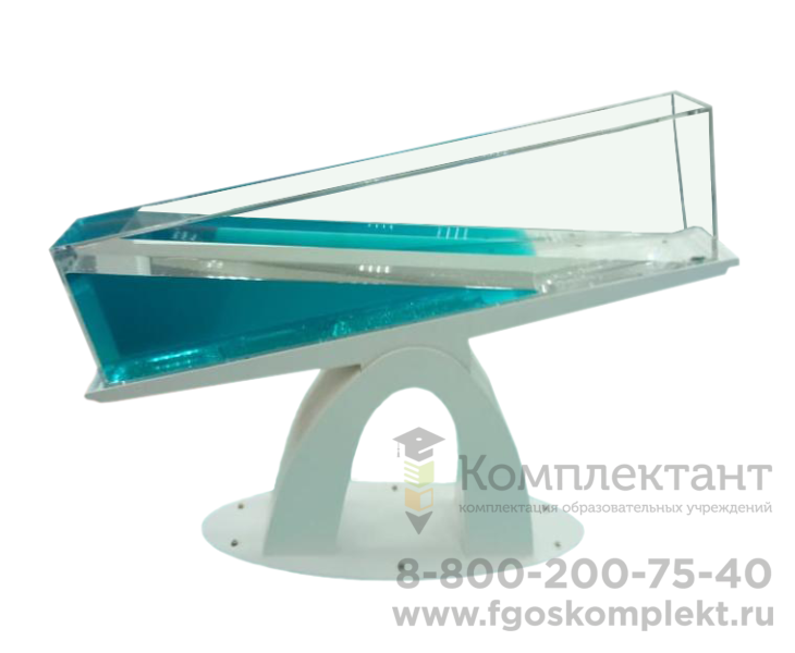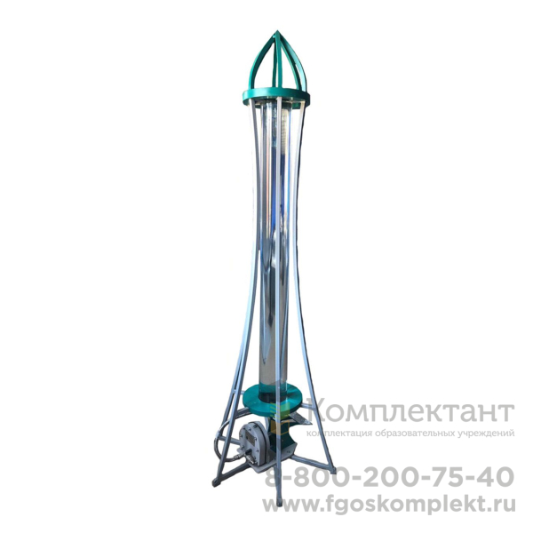 Данный экспонат состоит из акриловой колбы заполненной водой. Колба удерживается пространственной стальной рамой с основанием из стального листа.