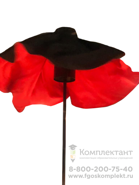 Интерактивный экспонат 2 предназначен для демонстрации распределения волн в воздухе. В верхней части комплекса зафиксирована ткань, скроенная в форме окружности с отверстием посередине. Посетитель крутит ручку, что приводит к вращению ткань (один из любимых экспонатов для фотографий и публикаций в социальных сетях).