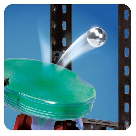 Шарики выстреливаются пружинной катапультой на трамплин и отскакивая от него попадают в улавливающую воронку. Точность катапультирования обеспечивается за счет механизма прицеливания, с помощью которого можно вращать механизм вокруг трех осей.