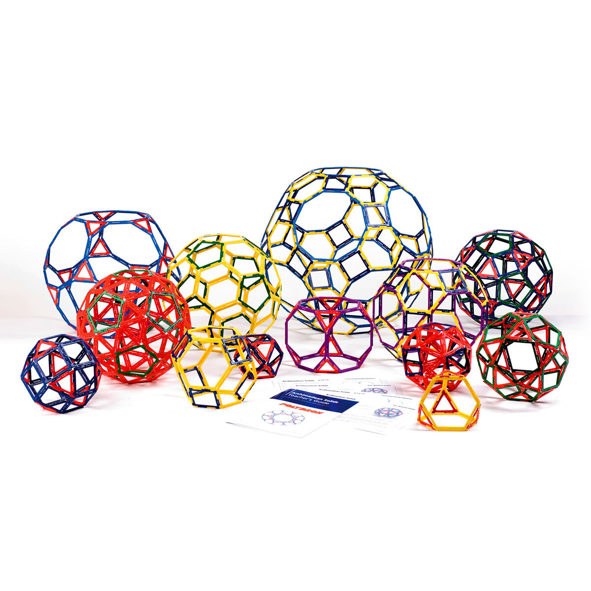 Набор предназначен для групповой игровой деятельности, для изучения основ математики, конструирования, моделирования и состоять из конструктивных элементов различных геометрических фигур каркасного типа с возможностью изучения и сборки всех известных Архимедовых тел (13 шт).