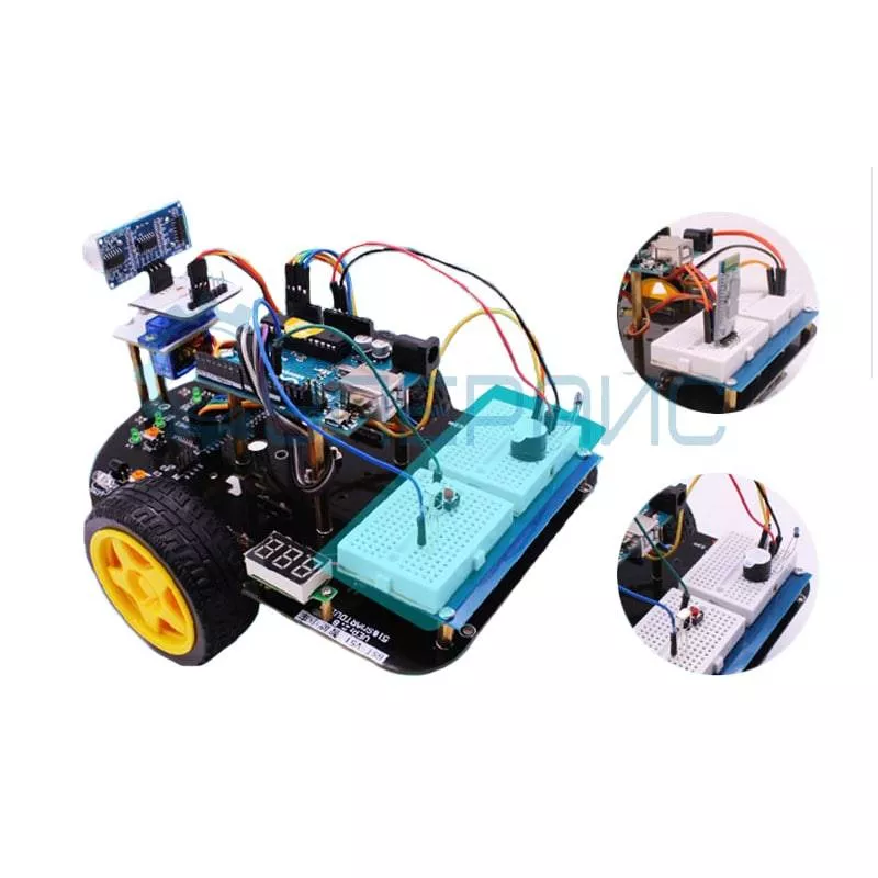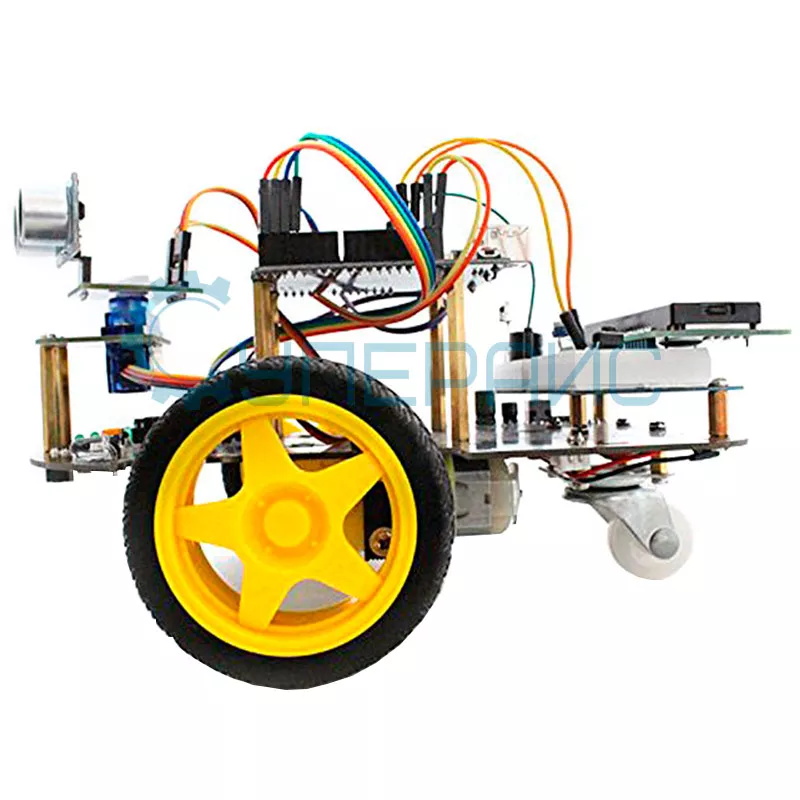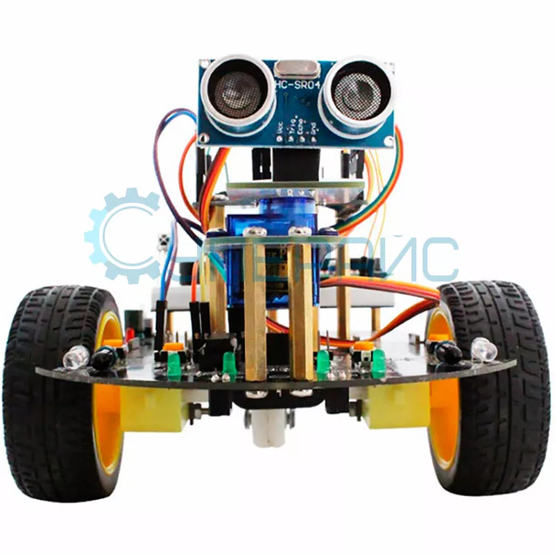 движение по заданной траектории или линии. В заданном режиме машинка-робот передвигается по заранее сформированному пути благодаря существованию датчиков линии. Robot Car умеет двигаться вперед, назад, вправо и влево, он легко проезжает как плавные повороты, так и трудные участки маршрута, например, в форме восьмерки;преодоление препятствий. Робоплатформа оснащена ультразвуковым датчиком расстояний, который используется для нахождения преград на пути робота. Посредством особого алгоритма передвижения роботу удается объезжать препятствия и не застревать в углу;
